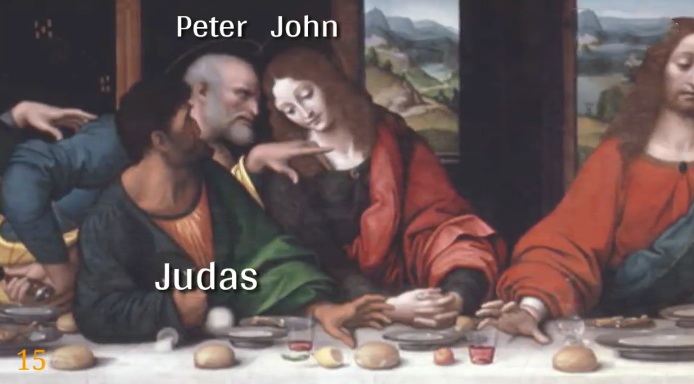 ● जुडस वह इंसान था जिसने जीसस के साथ विश्वासघात किया था और रोमनो द्वारा जीसस को पकड़वाया था। पेंटिंग में द विंची ने इन दृश्यों को बड़ी खूबसूरती से दिखाया है पेंटिंग में जुडस अकेला एक ऐसा व्यक्ति है जिसे द विंची ने डार्क स्किन के साथ बनाया है और उसके सीधे हाथ में पैसों से भरा पाउच है जो उसे पेमेंट के रूप में दिए गए थे जीसस के साथ विश्वासघात करने के लिए।
