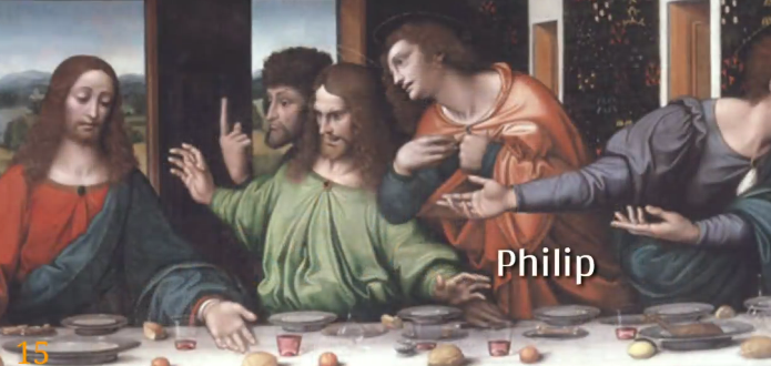 ● बाइबल के अनुसार जब जीसस कहते हैं कि तुम में से कोई एक मेरे साथ विश्वासघात करेगा तो उनमें से उनके एक शिष्य फिलिप पूछते हैं “भगवान क्या वह मैं हूं?” जीसस भविष्यवाणी करते हैं उनका विश्वासघाती उनके साथ ब्रेड को उठाएगा वॉल पेंटिंग में हम यह देख सकते हैं कि जीसस के यह कहने के बाद उनका एक शिष्य जेम्स द ग्रेटर डर से अपने हाथों को पीछे करता है वहीं दूसरे शिष्य जुडस का ध्यान पीटर और जोहन की बातों से डिस्ट्रैक्ट हो जाता है और वह ब्रेड उठाने के लिए प्लेट की तरफ हाथ बढ़ाता है। और उसी वक्त जीसस भी अपना हाथ ब्रेड को उठाने के लिए बढ़ाते हैं।